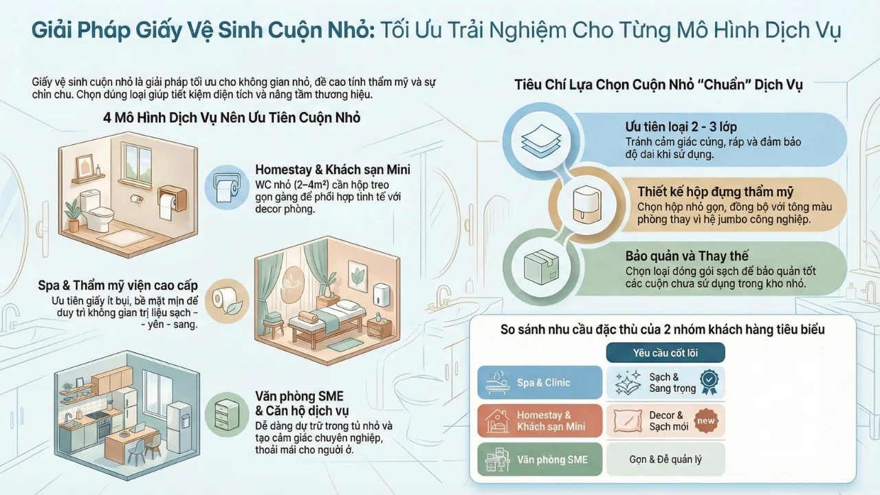 2. Giấy vệ sinh cuộn nhỏ dùng cho ai? Giải pháp tối ưu theo từng mô hình dịch vụ
