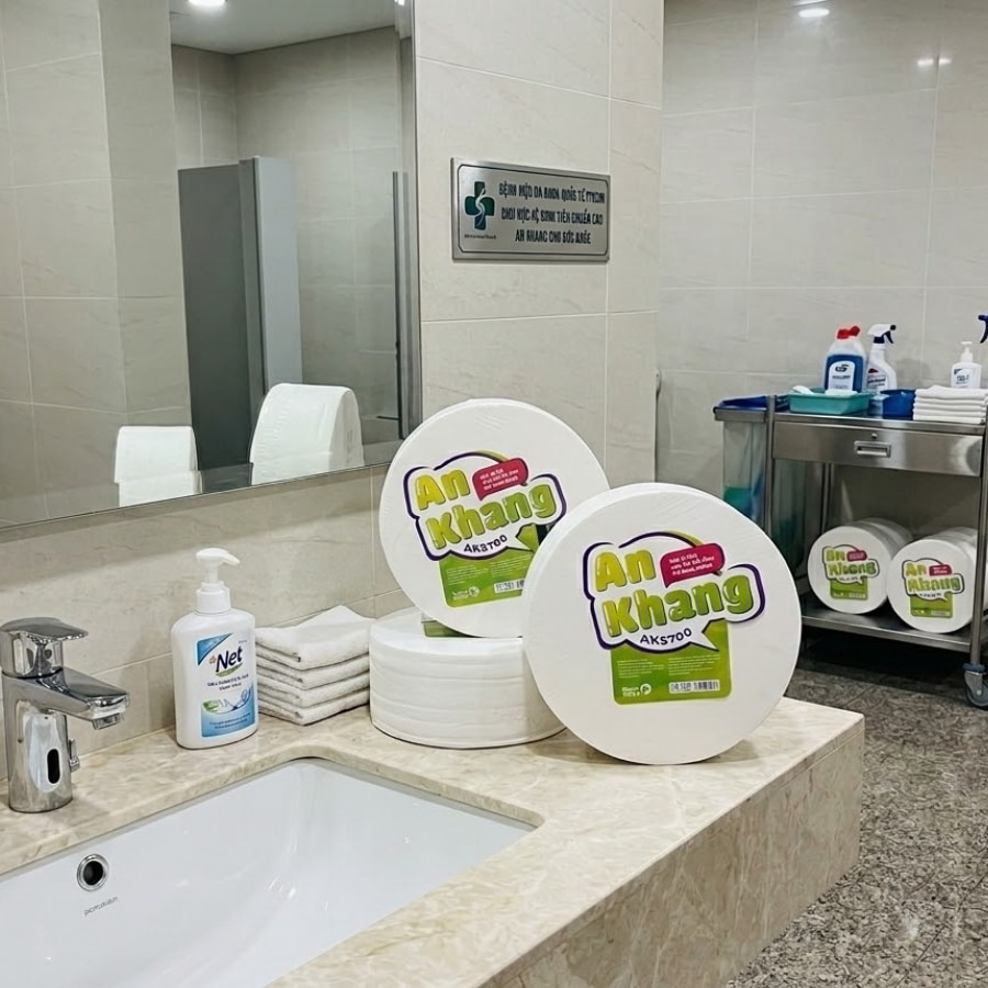 Trong khuôn viên bệnh viện, cuộn 700g đặc biệt tỏa sáng tại các khu vực hành chính, phòng làm việc của y bác sĩ, các phòng khám chuyên khoa, hoặc các khoa lưu trú nội trú có lượng bệnh nhân trung bình. Kích thước của chúng tương thích hoàn hảo với hầu hết các loại hộp đựng giấy thiết bị phổ thông, giúp nhân viên dễ dàng tháo lắp và kiểm soát. Chúng đảm bảo nhà vệ sinh không bao giờ rơi vào tình trạng “cháy giấy” giữa chừng, nhưng cũng không quá cồng kềnh để lưu trữ.