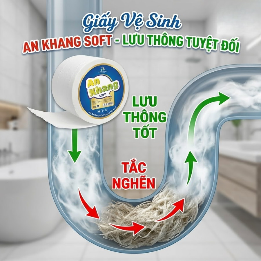 Quá trình phân rã sinh học này diễn ra chỉ trong vòng 5 đến 10 giây. Từng sợi bột giấy nguyên sinh sẽ tách rời nhau ra, biến thành một dạng hỗn hợp bột lỏng dễ dàng trôi tuột qua những đoạn uốn cong phức tạp nhất của đường ống (ống chữ U, chữ P). Điều này triệt tiêu hoàn toàn nguy cơ giấy đóng bánh gây tắc nghẽn cục bộ. Doanh nghiệp của bạn sẽ không còn phải đối mặt với các hóa đơn hút hầm cầu đột xuất lên tới hàng triệu đồng, hay nguy cơ phải đóng cửa một buồng vệ sinh giữa lúc quán đang đông khách nhất.