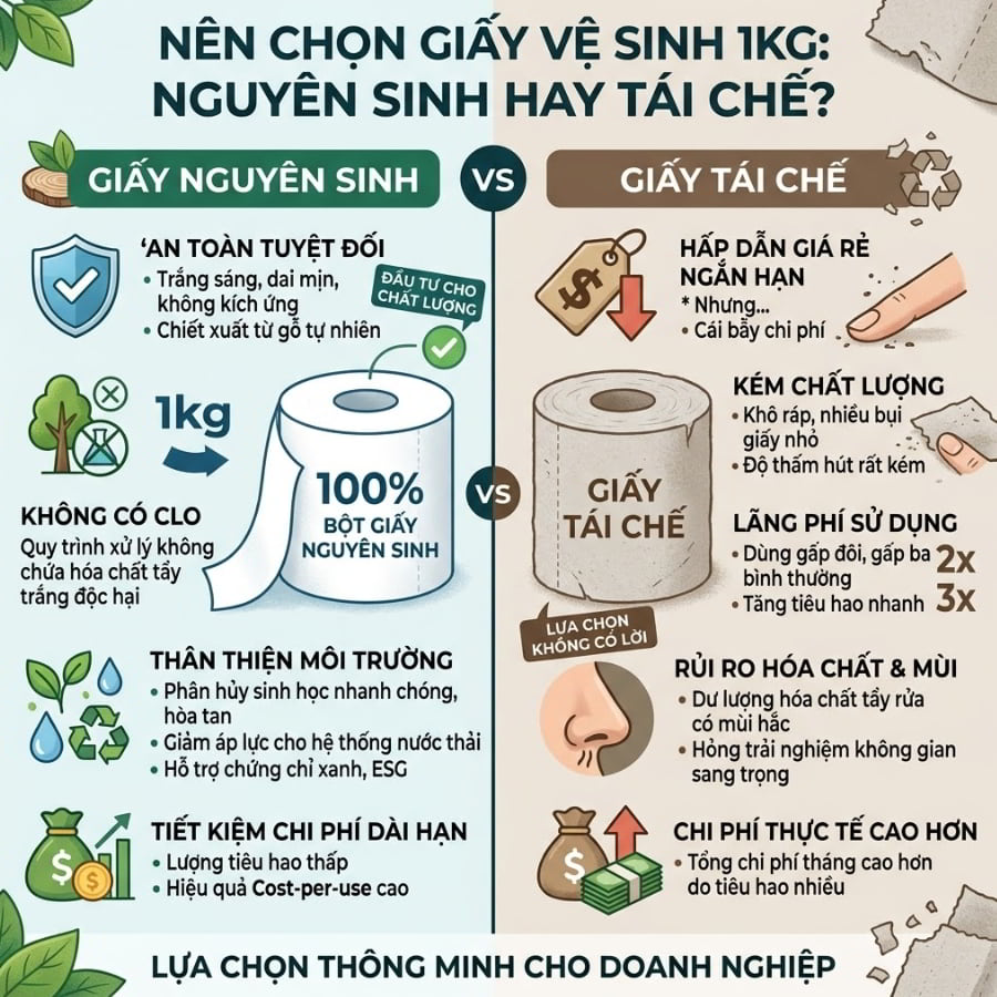 Nên chọn giấy vệ sinh 1kg nguyên sinh hay giấy tái chế?