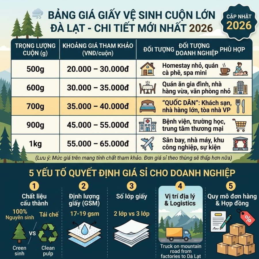 Bảng giá giấy vệ sinh cuộn lớn tại Đà Lạt chi tiết mới nhất 2026