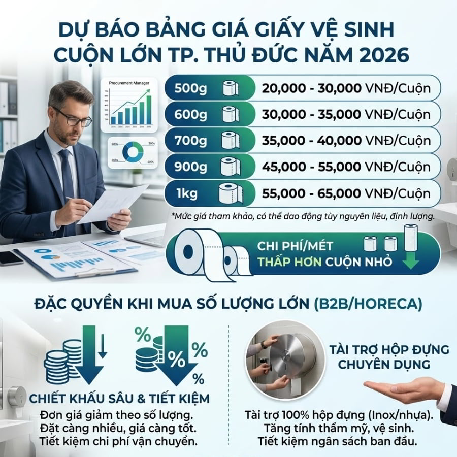 Bảng Giá Giấy Vệ Sinh Cuộn Lớn Tại TP Thủ Đức Năm 2026 Ra Sao?