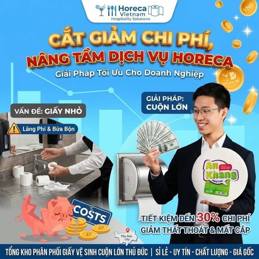 Nếu bạn đang tìm cách chấm dứt triệt để tình trạng lãng phí này, nâng tầm hình ảnh chuyên nghiệp và cắt giảm hàng chục triệu đồng tiền vật tư mỗi năm, thì việc chuyển đổi sang sử dụng giấy vệ sinh công nghiệp chính là lời giải hoàn hảo. Chào mừng bạn đến với hệ sinh thái của Horeca Việt Nam – Tổng kho chuyên phân phối giấy vệ sinh cuộn lớn TP Thủ Đức uy tín hàng đầu. Bài viết dưới đây sẽ bóc tách chi tiết từng lợi ích, bảng giá và giúp bạn hiểu tại sao giải pháp này lại thay đổi cuộc chơi quản trị cơ sở vật chất mãi mãi.