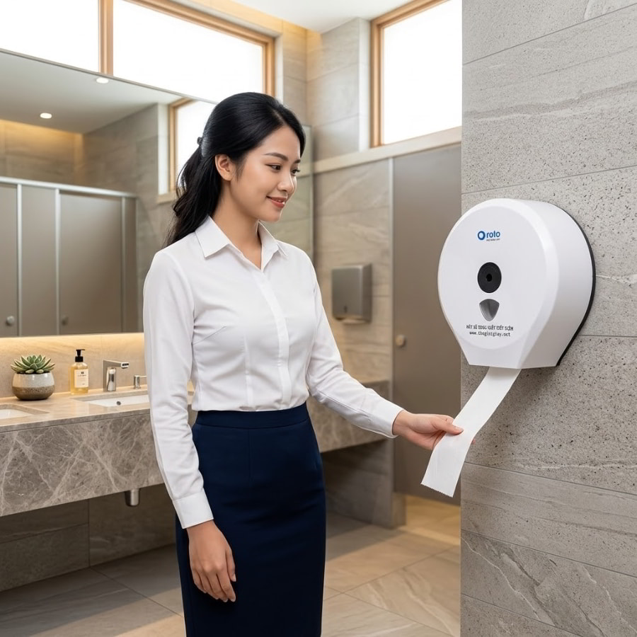 Không chỉ dừng lại ở bài toán bảo vệ vật tư, hộp đựng giấy còn đóng vai trò như một món phụ kiện trang trí nội thất. Nó tạo điểm nhấn thẩm mỹ, nâng cao hình ảnh chuyên nghiệp của không gian vệ sinh. Hộp đựng hạn chế tình trạng giấy rơi rớt, ướt nhẹp trong toilet công cộng , đồng thời giúp người dùng dễ kéo giấy, không bị đứt khúc hoặc hao phí. Khi mọi thứ được đặt gọn gàng trong hộp, lượng rác thải từ lõi giấy và bao bì cũng giảm thiểu đáng kể, tối ưu hóa nguồn lực vận hành và nhân sự vệ sinh. Hãy xem thêm danh mục hộp đựng giấy để nâng cấp không gian của bạn.