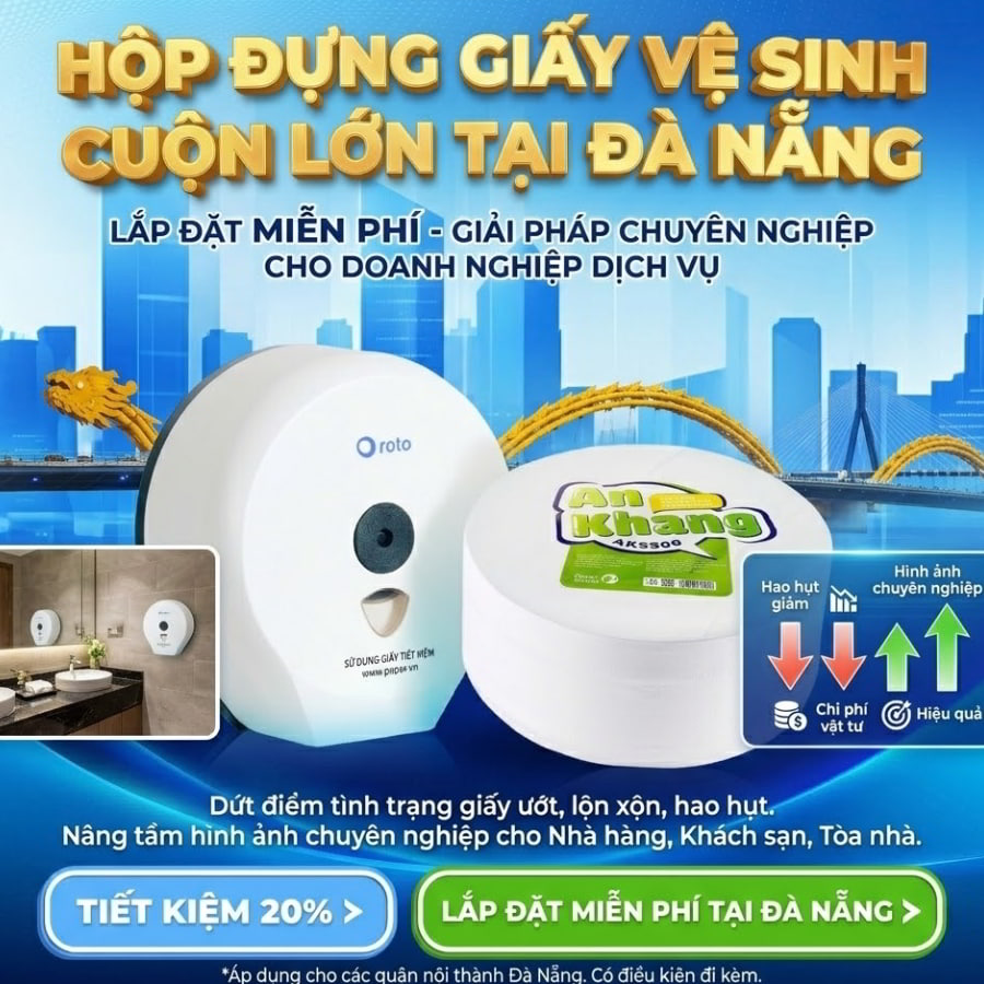 Bên cạnh phần cứng là thiết bị, chúng tôi tự hào cung cấp hệ sinh thái giấy vệ sinh cuộn lớn tại Đà Nẵng nguyên sinh 100%, an toàn tuyệt đối cho sức khỏe. Đội ngũ tư vấn am hiểu sâu sắc về cẩm nang quản trị Horeca, sẵn sàng đưa ra định mức tiêu hao chính xác cho từng quy mô doanh nghiệp. Chúng tôi cam kết bảo hành thiết bị nhanh chóng, đổi mới ngay lập tức nếu phát sinh lỗi từ nhà sản xuất. Hãy biến không gian vệ sinh của bạn thành điểm cộng hoàn hảo trong mắt khách hàng ngay hôm nay.