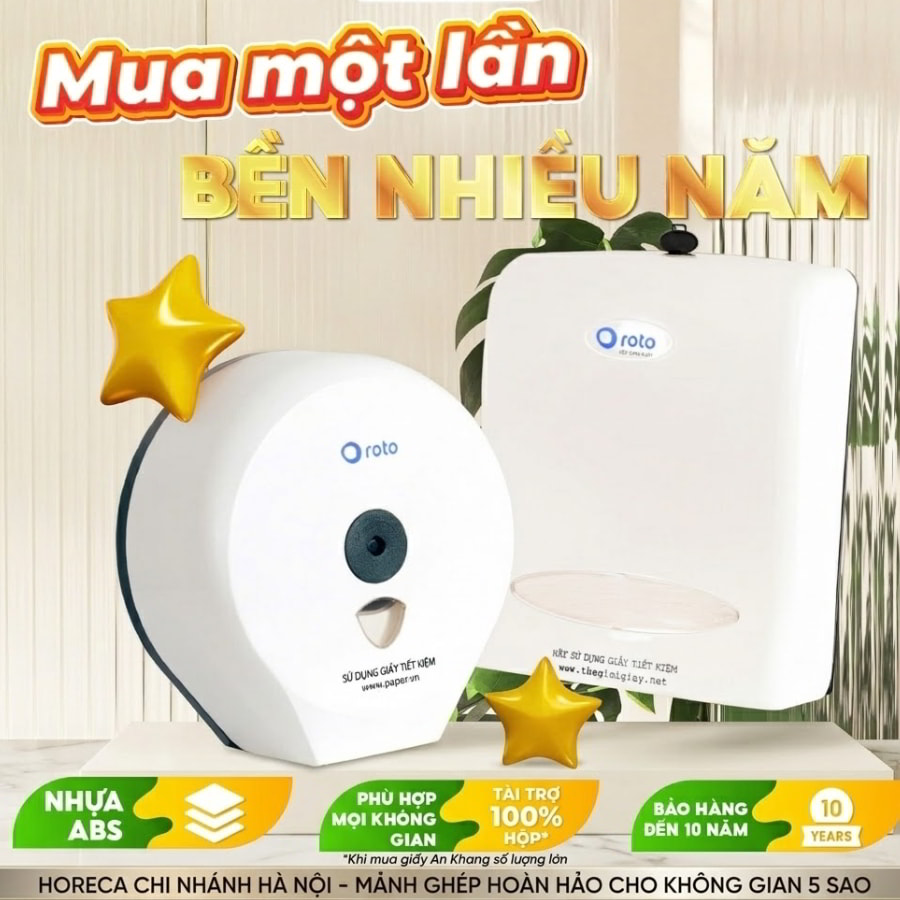 Sử dụng đồng bộ giấy cuộn lớn và hộp Roto giúp ngăn chặn hoàn toàn tình trạng giấy bị ướt, nhiễm khuẩn chéo hay rơi rớt lãng phí trên sàn nhà. Đặc biệt, chúng tôi cung cấp đầy đủ các giải pháp từ hộp đựng giấy vệ sinh cuộn lớn, hộp đựng khăn giấy lau tay đến bình xịt xà phòng tự động. Tham khảo ngay danh mục hộp đựng giấy để kiến tạo một không gian vệ sinh chuẩn 5 sao, nơi mỗi chi tiết đều phản ánh sự trân trọng mà doanh nghiệp dành cho khách hàng. Đặc biệt, khi mua giấy vệ sinh cuộn lớn An Khang số lượng lớn, khách hàng sẽ được tài trợ 100% chi phí hộp đựng giấy chuyên dụng này.