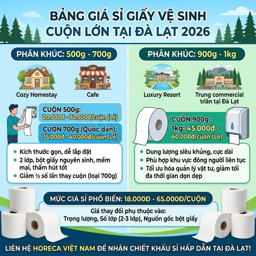 Bảng giá sỉ giấy vệ sinh cuộn lớn tại Đà Lạt năm 2026 hiện nay là bao nhiêu?