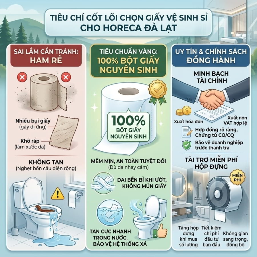 Đâu là tiêu chí cốt lõi khi chọn nguồn sỉ giấy vệ sinh cho ngành HORECA Đà Lạt?